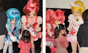 | 2011年4月2日(土)に「映画プリキュアオールスターズDX3 未来にとどけ!世界をつなぐ☆虹色の花」の舞台挨拶が行われました。 いつもは劇場で子供達から「力」をもらっているプリキュアたちが、ミラクルライトを子供達にプレゼントいたしました。舞台挨拶中では、声優キャストが映画の公開、そして多くの観客からの声援に声を詰まらせるシーンもありました。 涙あり、笑いありの舞台挨拶の様子をお楽しみくださいっ! |