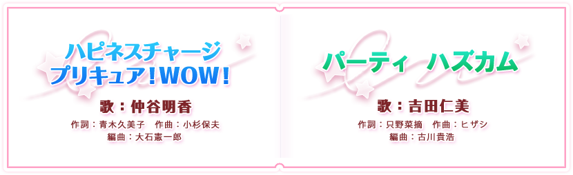 | 愛乃めぐみ/キュアラブリー | 中島 愛 | 白雪ひめ/キュアプリンセス | 潘 めぐみ | 大森ゆうこ/キュアハニー | 北川里奈 |