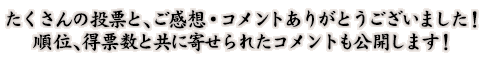 ![]() 2012年のワールドプレミアイベントで「アニメ雑誌の人気投票ではいつもレギュラーメンバーの中で最下位だったので、Ωでは一位になりたい」と語っていた古谷徹さん。WEB投票ですが、念願の一位に輝きました! ・「星矢は前作に比べてすっかり大人っぽくなってさらに好きになりました。 」 ・「Ωでも貫禄がある〜!! 」 ・「少年だった頃よりも落ち着きがでて、様々な戦いを乗り越え、大きく、凛々しくなった。」 |