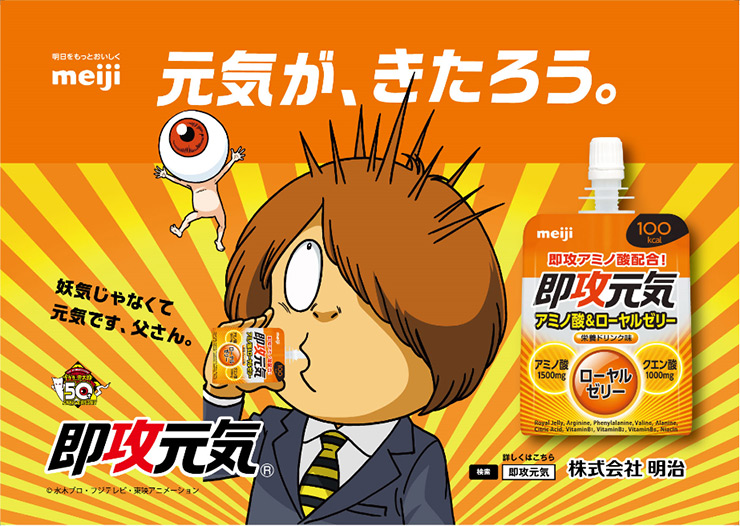 「元気が、きたろう。」『ゲゲゲの鬼太郎』×『明治 即攻元気』がタイアップ!