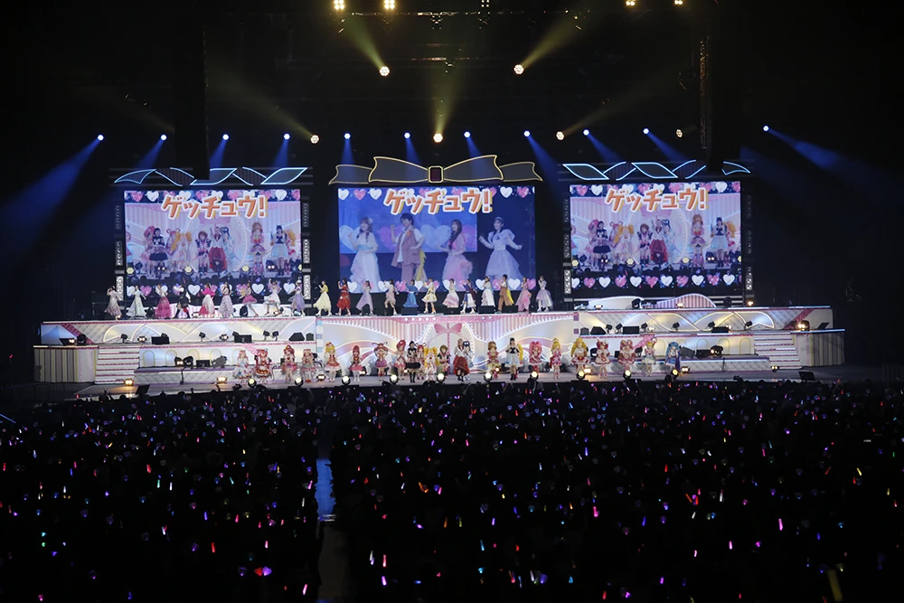 無線制御で会場中のミラクルペンライトが一色に染まったり、センター席を大風船が弾んだりと、バラエティ豊かな演出がステージを盛り上げていく。また、いずれの曲でも客席からは「キュンキュンキュン!」「プリッキュア~!」「ハロー!ハロ!」「Girls! Let‘s go!」「FOR ME!FOR BOYS!」「ハイ!ハイ!」「トライ!トライ!」と大きな掛け声が上がっていた。