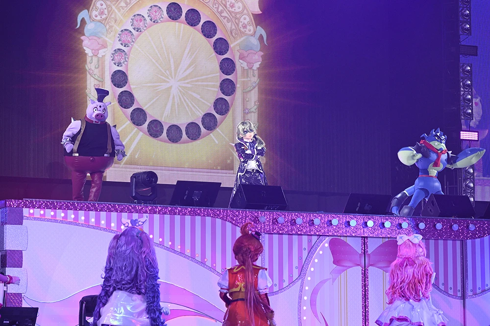 スクリーンに歴代シリーズの名シーンを振り返るオープニングVTRが映し出されたのち、ステージには音符頭がキュートなライブの妖精・ライブルンが現れた。
