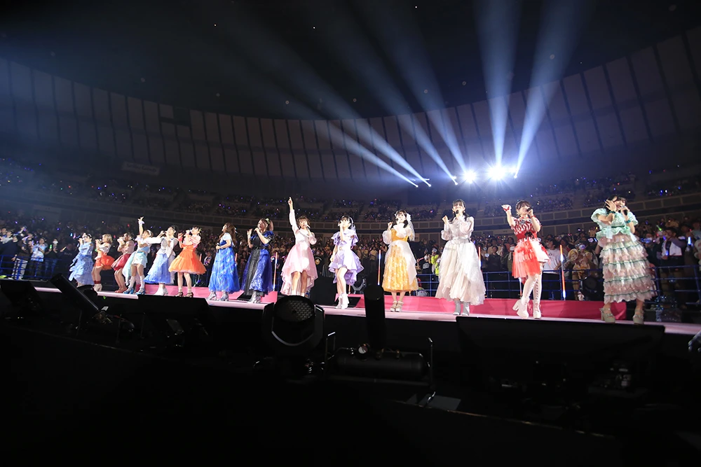 この曲は事前に振り付けレクチャー動画が公開されていたこともあって、ステージ上のシンガーズも、客席のファンも、ダンスの息はピッタリ。一緒に身体を動かすことでライブの感動をみんなでシェアし合ったのだった。