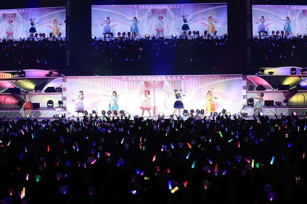 さらに、ラストコーラスではうちやえゆか、工藤真由、宮本佳那子、茂家瑞季、林ももこ、池田彩、吉田仁美、黒沢ともよ、仲谷明香、礒部花凜、北川理恵、駒形友梨、吉武、Machico、佐々木李子、後本萌葉、そして石井という歌手全員がステージに集合! 重なり合う20人の歌声が、シリーズの歴史の厚みを物語っていた。