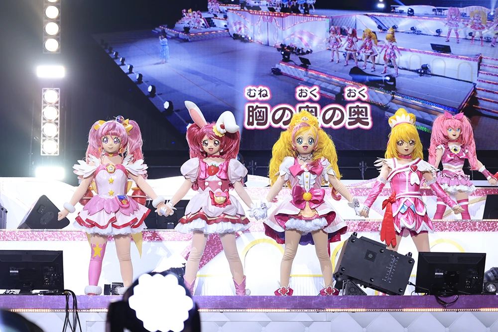 プリキュアがメインステージで踊り、シンガーズは花道を歩いて客席を盛り上げる