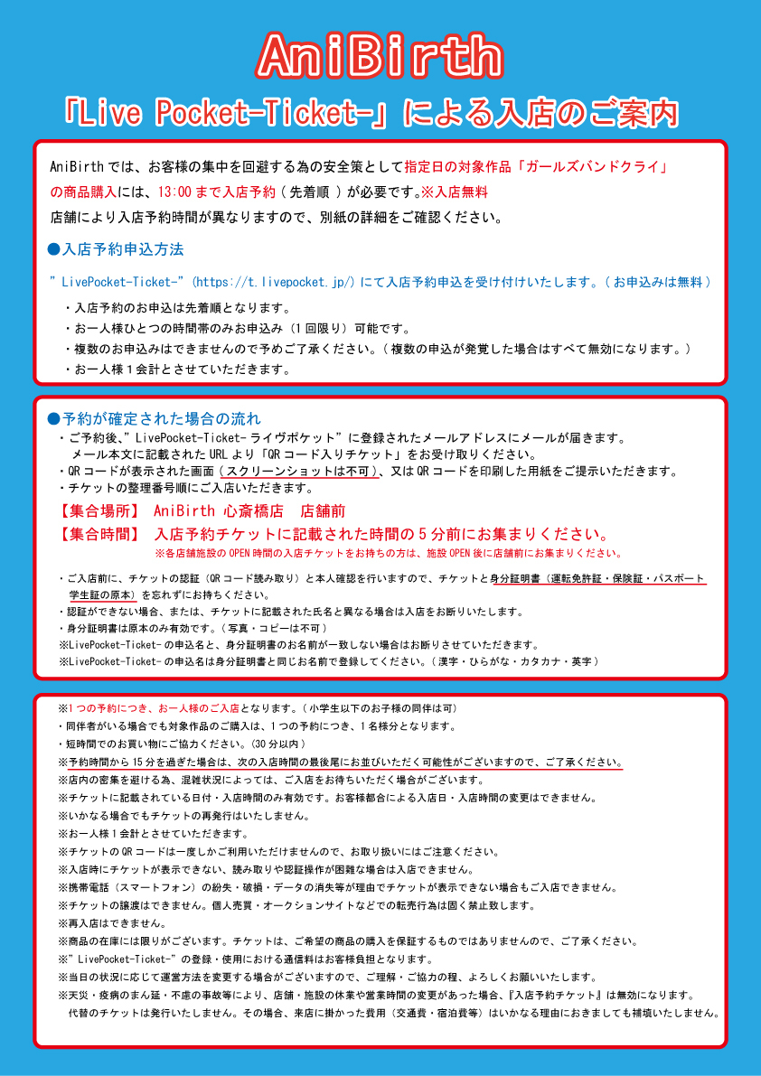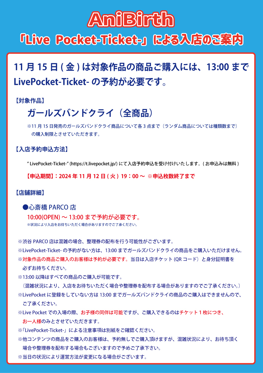 11/15(金)AniBirth心斎橋PARCO店入店について