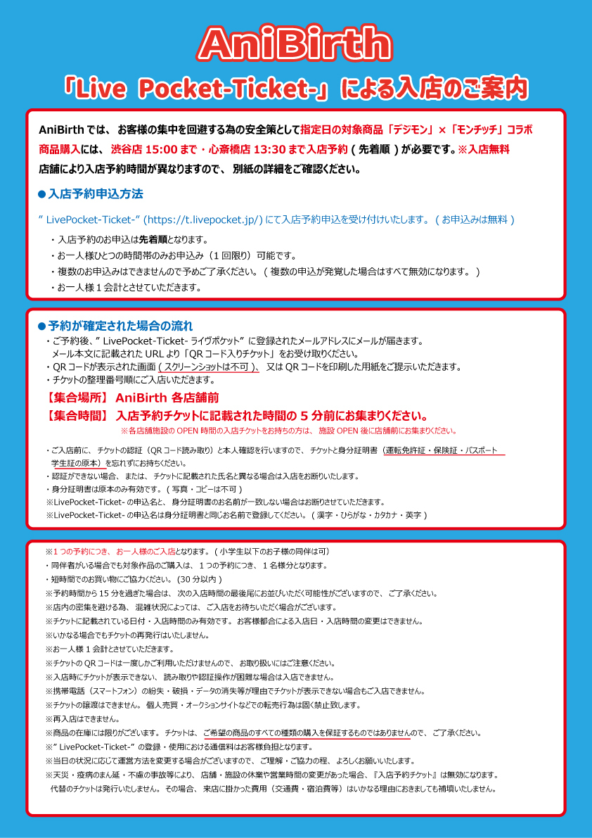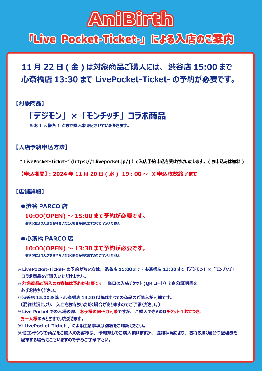 11/22(金)「Live Pocket-Ticket-」による入店のご案内