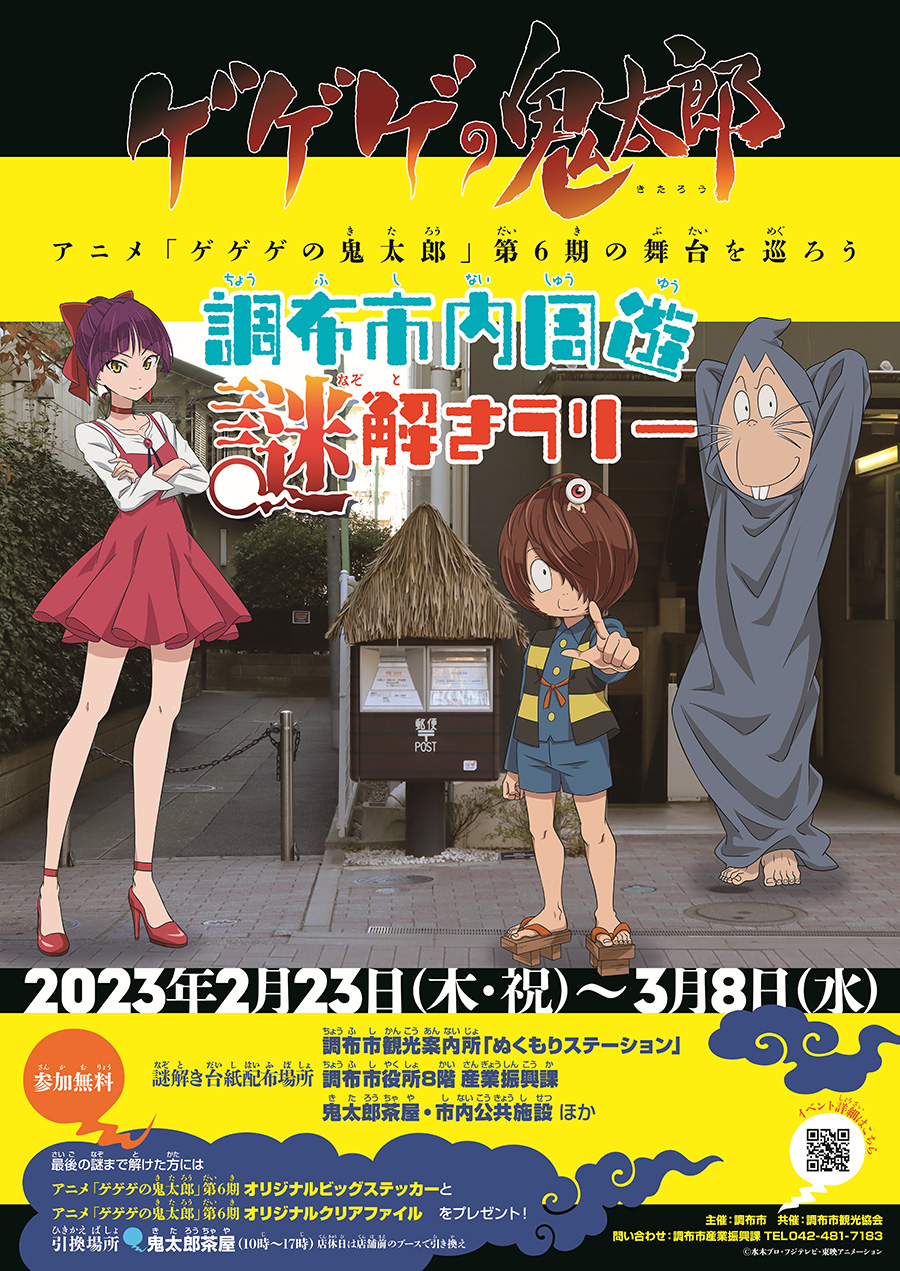 アニメ「ゲゲゲの鬼太郎」第6期の舞台を巡ろう『ゲゲゲの鬼太郎 調布市内周遊謎解きラリー』開催!!