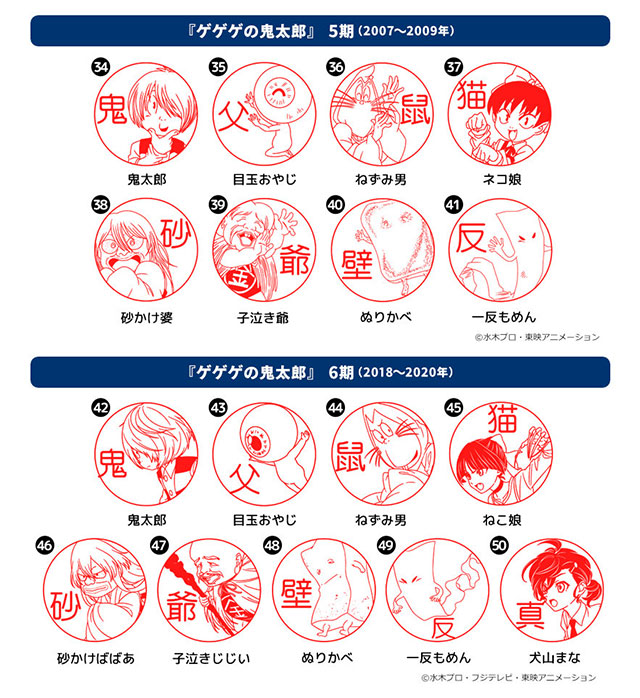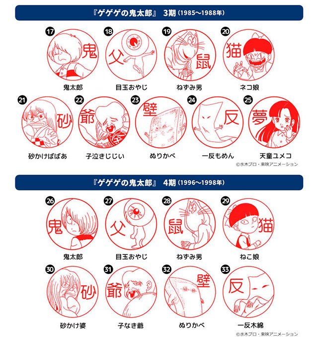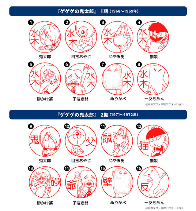 < トップに戻る ゲゲゲ ゲゲゲの鬼太郎 はんこコレクション(セルフインクタイプ) 販売価格 2,500(税込) 発売日 発売中 鬼太郎、目玉おやじ、ねずみ男、ねこ娘、砂かけばばあ、子泣きじじい、一反もめん、ぬりかべ(第1期~第6期)など50種類のイラストから選べるオーダーメイドはんこ。時代によって異なる絵柄のタッチの違いを楽しめるだけでなく、荷物の受け取りやメモなどへのサインがわりにも使えます。 詳細はこちら