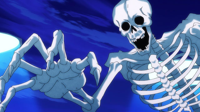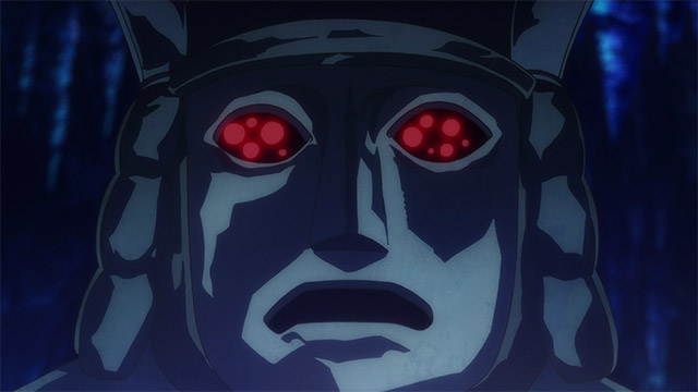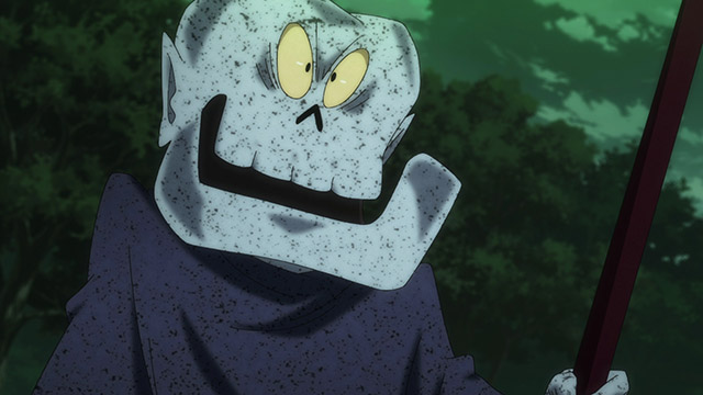 巨大な骸骨の妖怪。石碑を倒されて復活し、石碑を倒した人間を狙い襲った。目から光線を放つ。