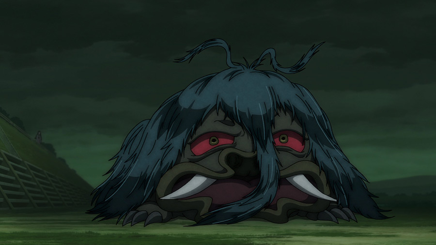 口から吐き出されるタンにつかまると、コンクリートのように固められてしまう。 仲間の二口女、かまいたちと共に、妖怪城の人柱のため十三人の子供をさらっていった。 かつて妖怪城とともに山に封じられていたが、何者かの手によって復活してしまった。