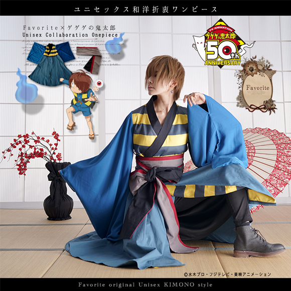 グッズ12月ボーダー×青の鬼太郎の和洋折衷着物風和装 -