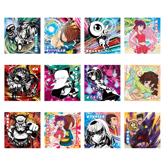 < トップに戻る ゲゲゲの鬼太郎 人魂グミ ~妖気解放~ 販売価格 130円(税抜) 発売日 2019年8月5日 大好評の【人魂グミ】に早くも第4弾が登場。お菓子は、ソーダのジュレグミをプルっとしたグミで包み込んだ「もっとゾッとしソーダ味」。 おまけの暗闇で光る蓄光シールは、“クール”な装いのモノトーンのタッチ。レアの【鬼太郎】、【石動零】そして【ねこ娘】は フルカラー+ホロ箔デザインで再現。さらに、きらりと光るスーパーレア1種を加えた全12種のラインナップです。