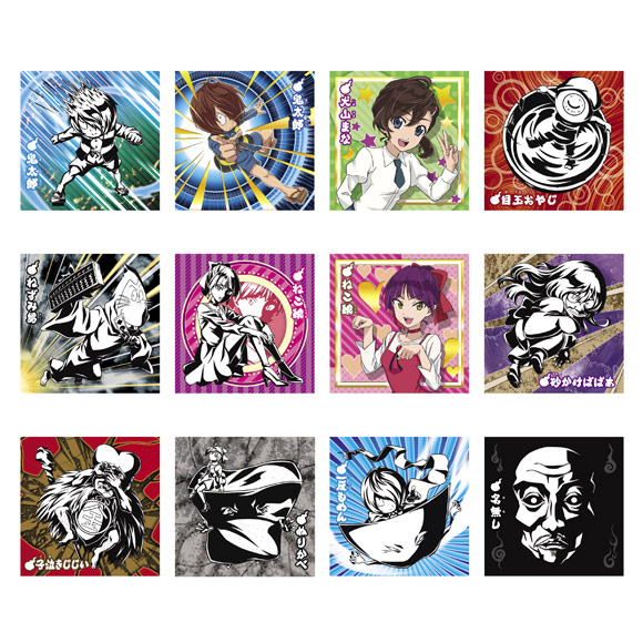 < トップに戻る 人魂グミ 販売価格 130円(税抜) 発売日 2018年7月23日 シール付きグミを発売!グミ形状は妖怪の世界観にマッチした【人魂】型、中のグミはプルッとした柔らかな食感を楽しめる【ゾっとしソーダ味】。暗闇で光る蓄光シールのおまけ付き、シールデザインは“クール”でかっこいい鬼太郎達のモノトーンのタッチ、レアの【鬼太郎】、【犬山まな】そして【ねこ娘】はフルカラーデザイン。ノーマル9種+ホロ箔押しレア3種の全12種です。