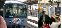 日曜日の朝、西武新宿線の西武新宿駅には、なが〜い行列ができていました。映画の公開を記念して、ここから西武遊園地まで『ふたりはプリキュア マックスハート』の急行列車が走るのです。
