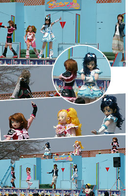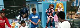 2月からはじまったテレビシリーズ『ふたりはプリキュア マックスハート』で、キュアブラック(=美墨なぎさ)とキュアホワイト(=雪城ほのか)に、新しくシャイニールミナス(=九条ひかり)が加わり、3人になったプリキュア。女の子に大人気のプリキュアはとってもキュート。集まってくれたプリキュア大好きの女の子たちも、キュートさでは負けていません。プリキュアのTシャツはもちろん、くろ、しろ、ピンクと、プリキュアにそっくりのかわいい衣装を身に付けた女の子たちがおおぜいいました。