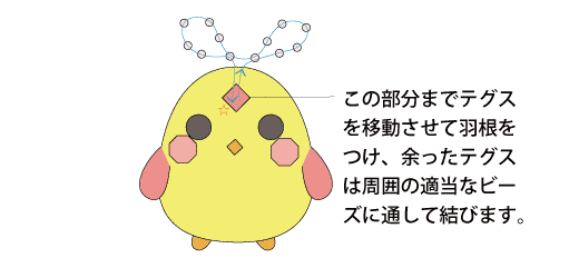 ☆が終点となり、余ったテグスは周囲の適当なビーズに通して結びます。