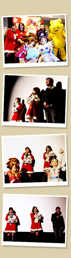 樹元:日向咲役の樹元オリエです。よろしくお願いします。今日は雨の中こんなにたくさんの方にお越しいただいて、ありがとうございます。一生懸命頑張ってつくった映画なので、みなさんに楽しんでもらえたらいいなぁと思っています。よろしくお願いします。 榎本:美翔舞役の榎本温子です。今日はお足元の悪いなか、ありがとうございます。私が「雨女」です、すみません(笑)。今日はとっても楽しみにしてきました。皆さん楽しんでください。よろしくお願いします。