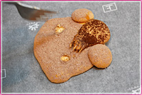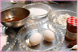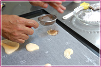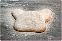 めとくちのところのこなをフォークで少しとって、あんずジャムをすこしぬってね。 |