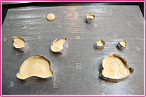 【ご家族の方】 アルミホイルの枠はずす時は慎重に。乱暴に外すと輪郭が崩れます。外した後、生地のフチが多少角張った感じでも焼いてる間に丸みをおびるので、気にしなくて大丈夫です。 |