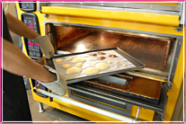 オーブンにいれて、ひょうめんがうすいキツネいろになるまでやいてね(10~15ふんぐらい) ※オーブンはとってもあついから、うちのひとにやってもらおう。 |