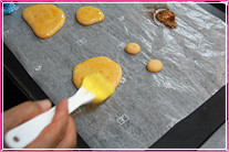 オーブンからだして、やいたきじがさめたら、でんしレンジであたためたあんずジャムをハケでぬってね。 ※オーブンでやけたきじはとってもあついから、さめるまできちんとまってね。 |