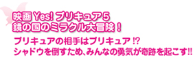鏡の国からやって来た、ちょっとヘンな双子の兄弟。鏡の国で一番大切なクリスタルをシャドウにうばわれ、言いなりになっている。シャドウにだまされ、偽ココと偽ナッツに化けてプリキュアに接近するが、正体を見破られると反省して味方になった。奇跡を起こすミラクルライトを持っている。 |