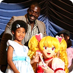 さらに、ステージにはスペシャルゲストとして、“プリキュア大好き親子”のボビー・オロゴンさんと娘のローズちゃんが登場! 2歳の頃から『プリキュア』が大好きで、グッズもたくさん持っているというローズちゃん。司会のお姉さんからの「プリキュアでは誰が好き?」という質問に、照れながらも「キュアピーチ」と答えていました。ちなみにボビーさんはスタイル抜群&セクシーなベリーの大ファンだとか。