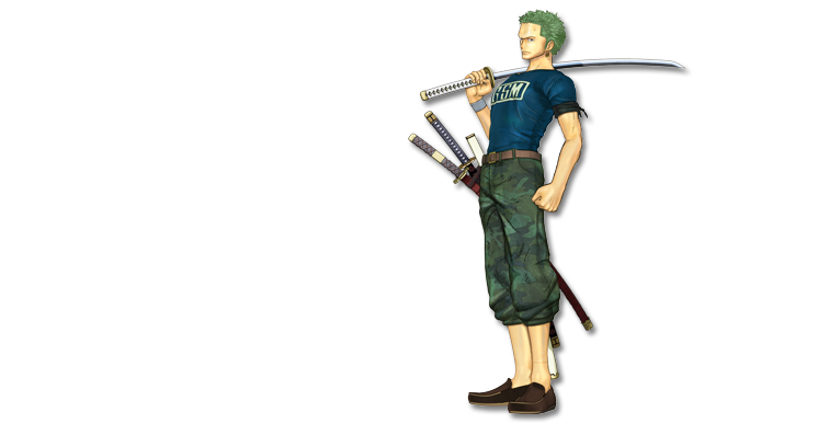 幼なじみ・くいなとの約束を果たすため“世界一の剣豪”を目指す剣の達人。船内でも常に鍛錬を重ね、己を高めるためには一切の甘えも妥協もない武士道精神の持ち主。その一方、本人に自覚はないが極度の方向音痴で、今回も麦わら帽子を探すうちに、いつのまにか危険な場所へ・・・。
