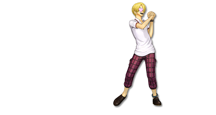 世界中の魚が集まる伝説の海“オールブルー”を探す料理人。大海賊“赫足(あかあし)のゼフ”に仕込まれた料理の腕前と足技は天下一品!つねにレディーファーストで、サニー号に迫る数々の危険の中でも、心配するのはナミとロビンのことばかり!?