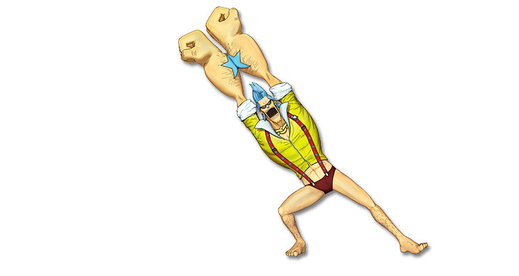 世界一の造船技師・トムの弟子としてその腕を受け継ぐ、屈指の船大工。船だけでなく自らの体中にも色々な改造を施した半身機械のサイボーグだが、情に厚く涙もろい。自身が建造したサウザンド・サニー号の操縦桿を握る・・・が、今回はその役目を奪われる!?