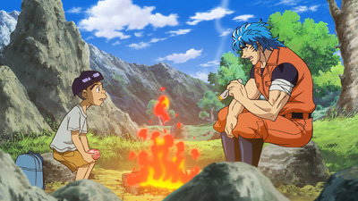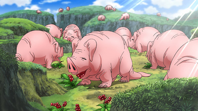 卸売商トムの案内により、ある島へ向かったペックは、狂暴な食材・赤毛ブタに襲われる最中、ついにトリコと出会う。