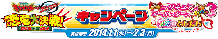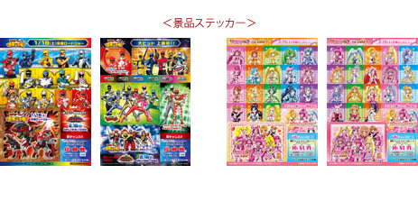 タイアップキャラクターは、男の子・女の子に絶大な人気を誇るテレビシリーズを映画化した、「劇場版 獣電戦隊キョウリュウジャー VS ゴーバスターズ 恐竜大決戦! さらば永遠の友よ」(1月18日全国ロードショー)及び「映画プリキュアオールスターズ NewStage3 永遠のともだち」(3月15日全国ロードショー)に加え、2014年2月に始まるテレビ新シリーズ「烈車戦隊トッキュウジャー」(2月16日より全国テレビ朝日系にて放送開始)と「ハピネスチャージプリキュア!」(2月2日よりABC・テレビ朝日系列にて放送開始)も登場し、キャンペーンを盛り上げます。