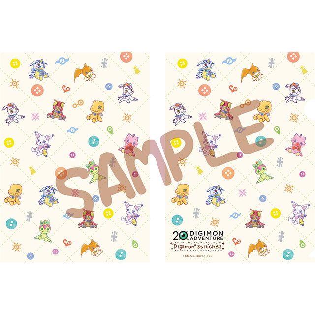 『デジモン スティッチーズ』シリーズ ぬいぐるみになったかわいいデジモンたちのクリアファイル。選ばれし子供たちとパートナーデジモンがデザインされた可愛いクリアファイルです。