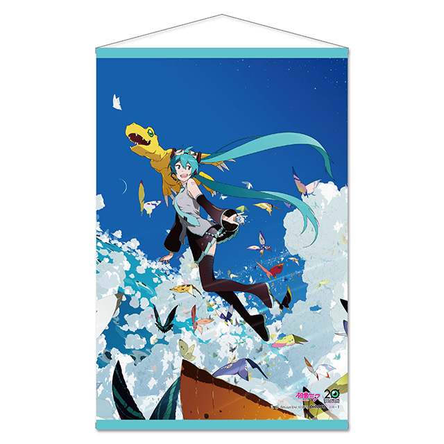 20周年記念!初音ミクとデジモンの豪華コラボビジュアルを使用したタペストリー。