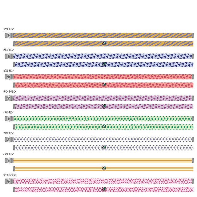 卵柄の可愛いデザインベルト!アグモン、ガブモン、パタモン、テイルモン、ピヨモン、テントモン、パルモン、ゴマモンの全8種!