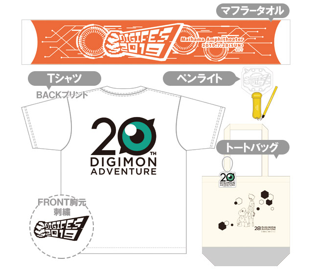 デジフェス2019の開催に伴い会場にて販売されるイベントグッズ全4種(マフラータオル、Tシャツ、ペンライト、トートバッグ)を特別価格 にて販売いたします!