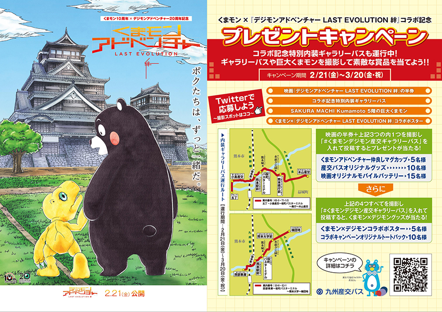 映画の半券+上記3つのどれかを撮って “#くまモンデジモン産交ギャラリーバス”を入れてTwitter投稿すると