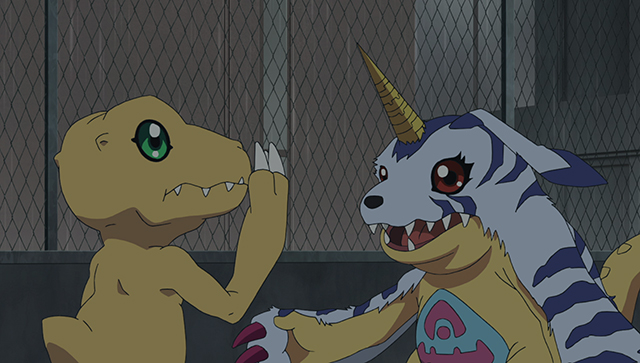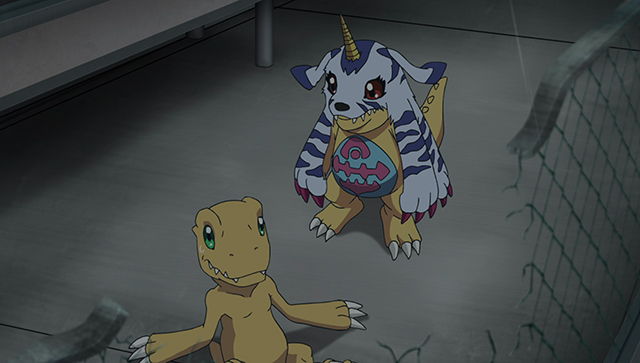 アグモンとガブモンは、2人だけでどうすればいいのか話し合う。