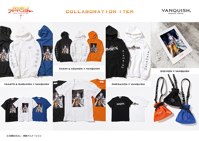 渋谷で生まれたファッションブランド“VANQUISH”、そしてバーチャルギャルとして人気の”葵プリズム”とのコラボレーションが決定しました。2月14日(金)からTシャツやパーカーなど計7型のコラボアイテムを発売いたします!コラボヴィジュアルは、本作「LAST EVOLUTION」を象徴する太一とアグモンが手をつないだものがモチーフに。、109前の交差点でVANQUISHのスカジャンを羽織った太一とヤマトや、葵プリズムとアグモン、ガブモンが夜の渋谷の街に現れた様子などが登場。さらに、渋谷系デジモンことパンプモンとゴツモンの姿も?そして、これらのヴィジュアルが纏まったヴィジュアルブックを2月14日(金)からフリー配布いたします。配布場所は下記をご確認ください。