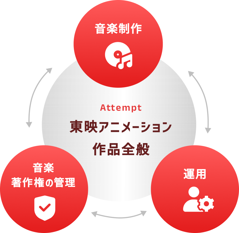 2001年の会社設立以来、東映アニメーション作品全般に渡る音楽制作・並びに音楽著作権の管理とその運用を行っています。各テレビ局系列音楽出版社・メーカー・プロダクション、各社との連携体制と同時に、アニメーション制作会社ならではの特色を活かす独自の体制作りを進めています。