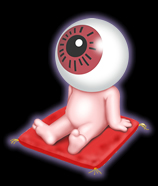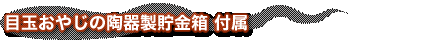 可愛らしい目玉おやじの、陶器製貯金箱を同梱。