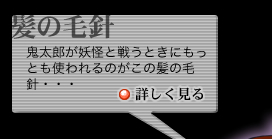 鬼太郎が妖怪と戦うときにもっとも使われるのがこの髪の毛針。一本一本の髪の毛が針のように鋭く硬くなって発射される。