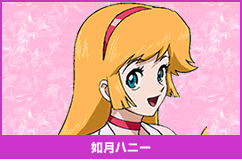 幼く見えるが、パンサークロー四天王の一人。冷酷な性格の持ち主で、必殺技は手にした傘の先端から繰り出す破壊光線と、口から発射するスカーレットビーム。陰湿な方法で、心理的にハニーを追い詰める。 |