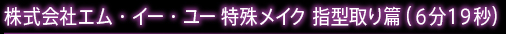 1995年 特殊メイク、特殊造形工房「Make-up and Effects Unlimited...」を設立。株式会社エム・イー・ユーは、特殊メイク・特殊造型・特殊カツラ及びヒゲ、特殊衣装を、自然でリアルな特殊メイク・特殊造型を制作する工房です。