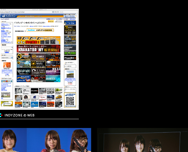 インディゾーンは、当初3次元グラフィックスワークステーションであるシリコングラフィックス(SGI)社のワークステーションユーザーの為の周辺機器とサービスを行う会社として1996年5月に設立されました。 現在でWindows/Linux/MacベースのMaya,3Ds Max,HoudiniといったCGおよびNukeなどのコンポジット(合成)ソフトウエアやPixarのRenderMan、ThinkBox社のKrakaotoaなどのレンダラーやレンダリング管理ソフトの販売・保守を行っています。
