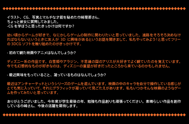 [INTRODUCING YOUNG ARTISTS / 次世代クリエイター紹介] 学校法人・専門学校 HAL名古屋/巾崎 理那