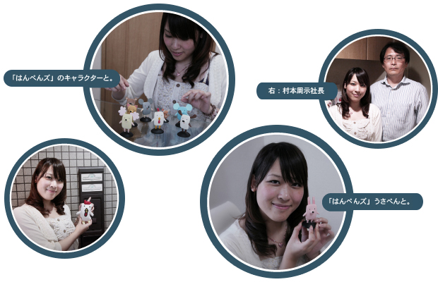 村本社長:WEBサイトの制作と運営や、携帯コンテンツ、スマートフォン向けのアプリ開発をしています。またキャラクター事業もやってまして、例えばはんぺんをキャラクターにした「はんぺんズ」も自社開発のキャラクターです。