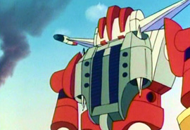 資料を探索したところ、『超人戦隊バラタック』のロボット・バラタックの背面には、垂直上昇用の噴射口や走行用キャタピラーを内蔵した「ランドセル」がついていました。しかし、これは胴体部分と一体化しており、分離は不可能でした。