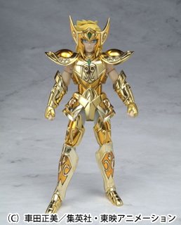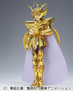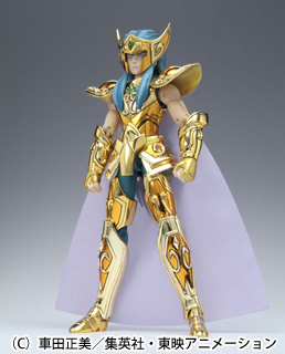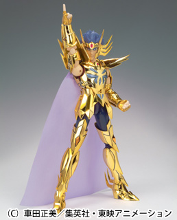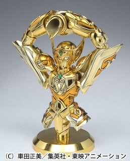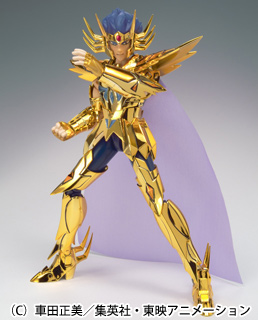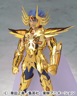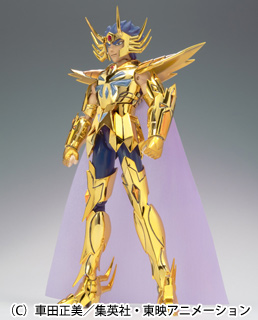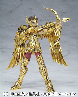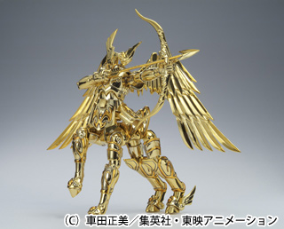 作品において象徴的聖衣ともいえる射手座の黄金聖闘士、サジタリアスのアイオロスがついに聖闘士聖衣神話で登場!聖衣はゴールドメッキされたダイキャストを使用、背中の翼も展開し、高級感と迫力を併せ持った仕上がりになっている。ペガサス星矢頭部が付属し、別売りの「ペガサス星矢」に聖衣を装着することも可能。劇中の名シーンが再現しよう!
